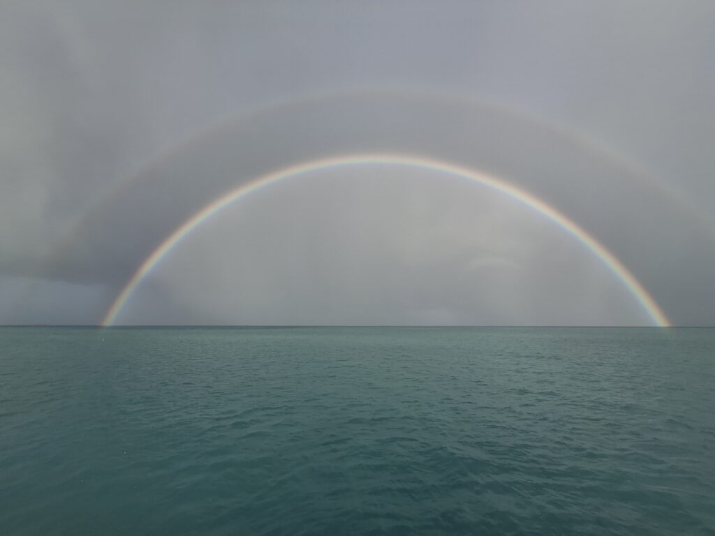 Mangroven, Korallenriffe, Algenteppiche. Sonnenauf- und -untergänge, die man kaum fassen kann. Schauer ziehen durch, hinterlassen vollständige Regenbögen, manchmal doppelt. Und endlich nach langen Monaten ohne wesentliche Niederschläge wieder Wasser zum mehr als Blitzduschen, Schnorchelequipment spülen, Wäsche waschen, Decksbeschläge entsalzen. Unsere Auffangstationen an Dodger und Bimini sind erfreulich effektiv.