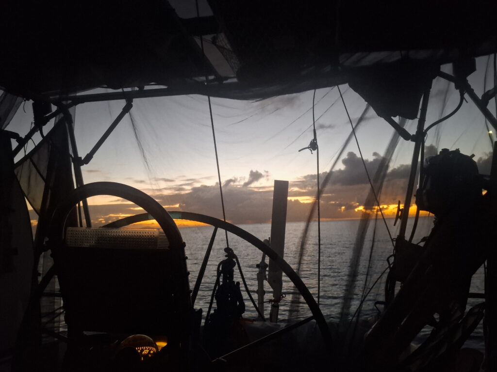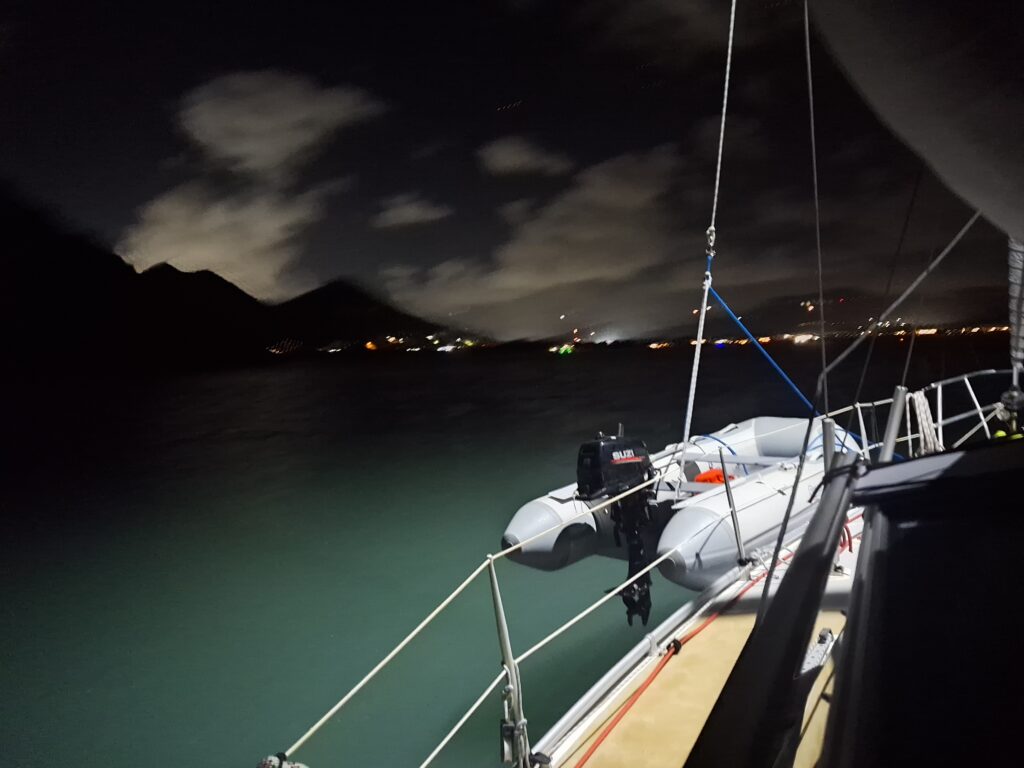 An Bord von Fuchur läuft das Leben im eigenen Takt. Dinghy fest, Sauerteig gefüttert, Brot gebacken, GingerAle und Kefir angesetzt. Unser DIY-Wassermacher läuft endlich – und macht uns richtig stolz. Jeden Tag allerdings auch eine halbe Stunde Arbeit und Krach wegen der Kärcher-Hochdruckpumpe: halbes Bad ausräumen, zig Hebelchen umlegen, mit dem mühsam zwischen den Schauern ergatterten Sonnenstrom etwa 20 Liter Trinkwasser entsalzen, alles retour. Da überlegt man sich dreimal, ob man das Nudelwasser inklusive Salz doch lieber gleich mit dem Topf über Bord holt. Trotzdem: der Stolz über die Selbstversorgung überwiegt.