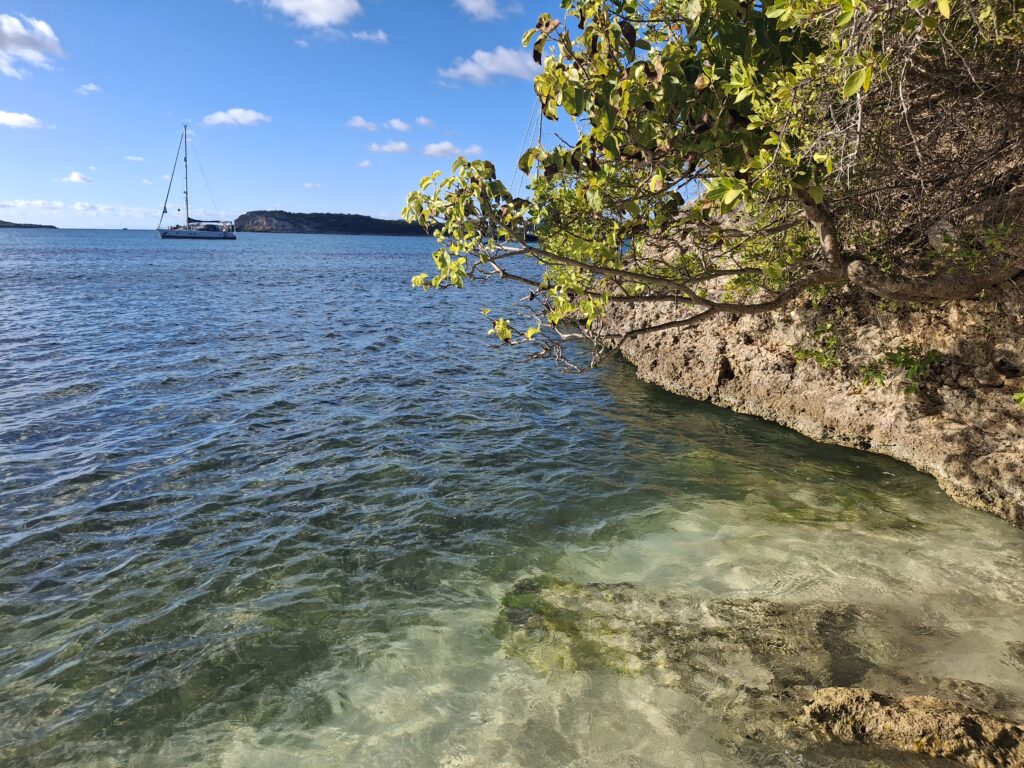 Inzwischen in Guadeloupe. Französische und kreolische Lebensart, Baguette, wieder Französisch im Ohr. Wir haben eine Machete gekauft und gehen nicht mehr direkt unter Kokospalmen durch. Aber das ist eine andere Geschichte.